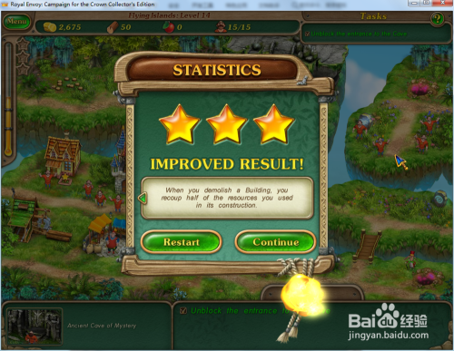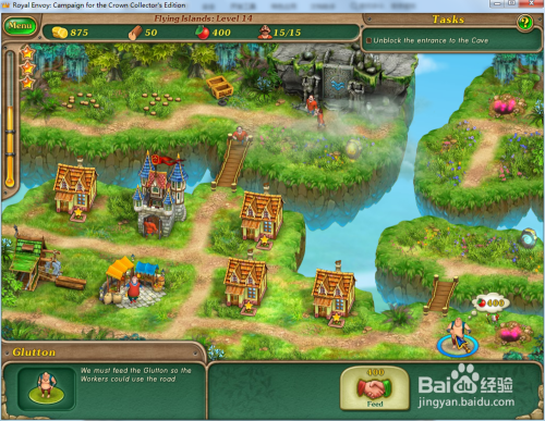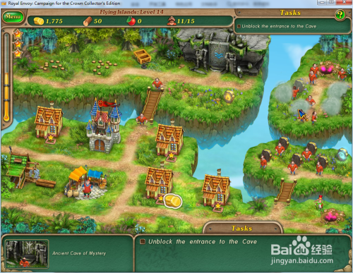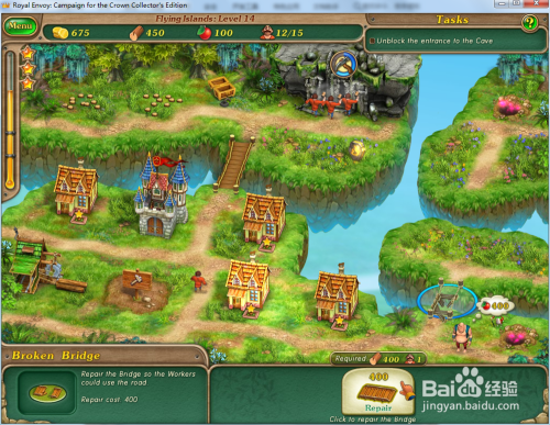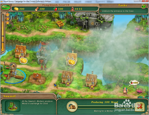 操纵工人再次断根洞窟大门,同时操纵锯木厂出产木头,当木头达到400时,修复右下方的木桥。