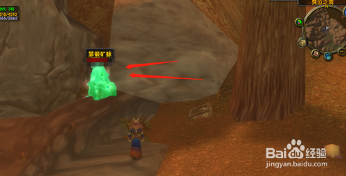 我们会看到山四周有一个水晶的工具,绿色的,这就是“瑟银矿脉”。