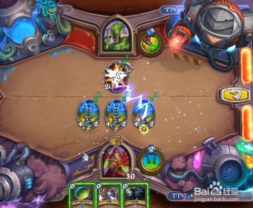 进入关卡,敌方场上有1个侍从,我方场上有3个1/2的侍从
