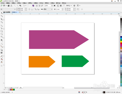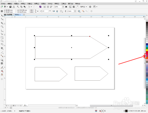 选中指示箭头图案,鼠标右键点击右边色板的中色块,将箭头设置为我们需要的颜色即可。