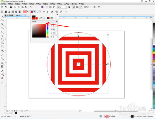 点击【编纂填充】,按图示将图案颜色设置为红色,这样我们的红色圆环图样填充就建造完当作了。