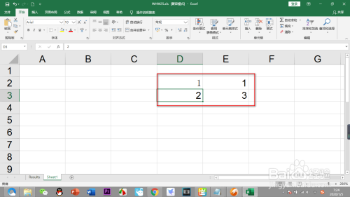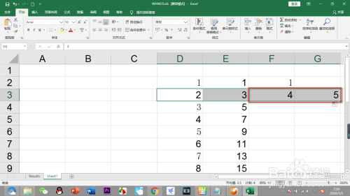 2.用鼠标框选住两个单位格,一般单位格填充默认等差数列,可是软件并不知道等差数列的“差”是几多,所以我们框选住两个单位格。