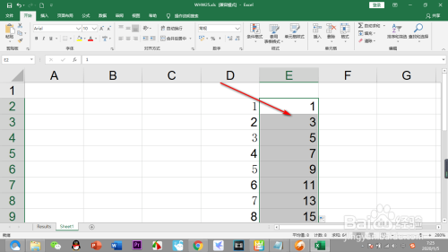 用鼠标框选住两个单位格,一般单位格填充默认等差数列,可是软件并不知道等差数列的“差”是几多,所以我们框选住两个单位格。