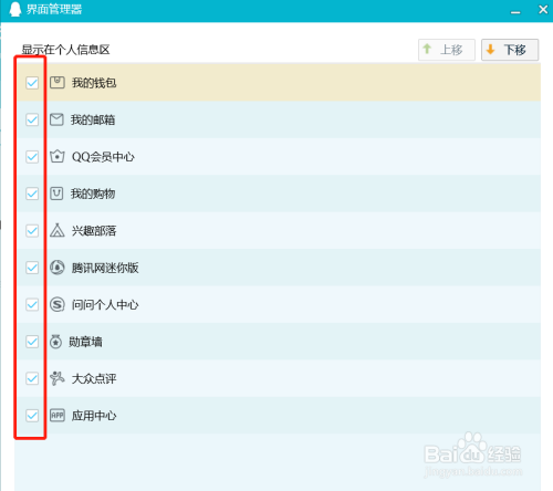 进入【界面办理器】页面。可以看到每个小我信息图标前面都有打勾。