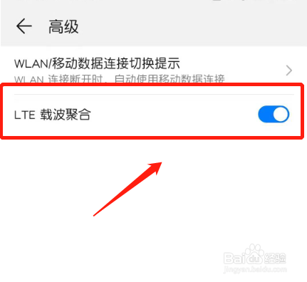 找到“LTE载波聚合”,查看后面的开关按钮是否打开即可。一般华为手机是默认打开这个功能的。