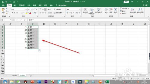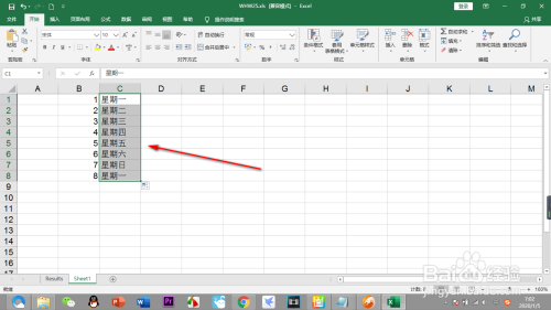 6.若是我们输入“礼拜一”,鼠标拖动主动填充就是按挨次的。