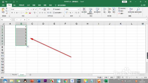 5.发现数字都是‘1’若是我们想要递增的数字就按住Ctrl键再来拖动就可以了。