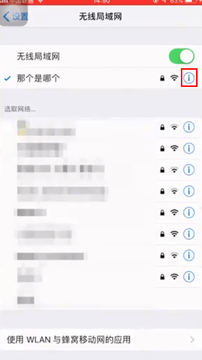 - 2点击已毗连WiFi的“!”,再选择下方的设置装备摆设DNS。