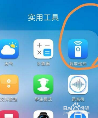 在华为mate20x手机桌面上的适用东西菜单里面,选择智能遥控图标进入。