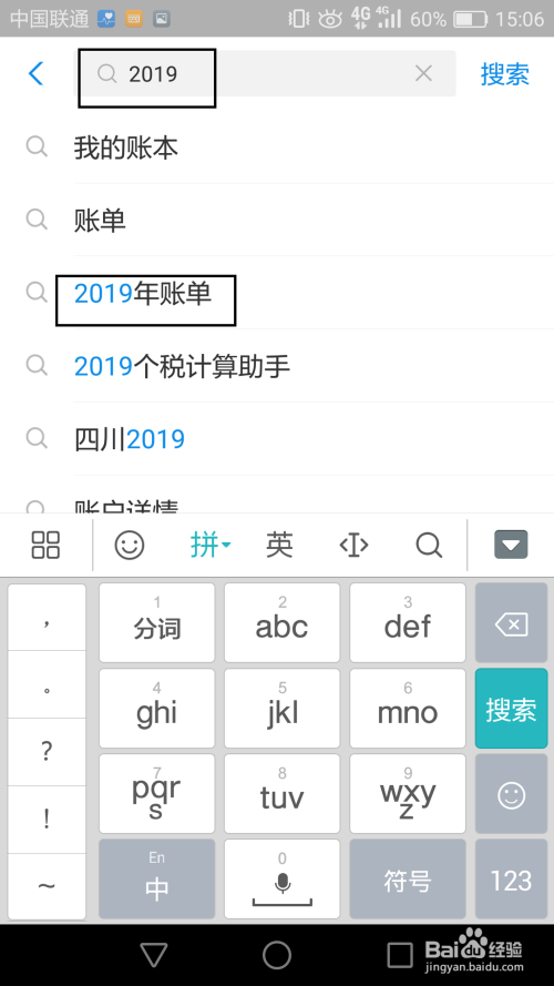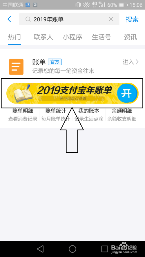 若是在初始界面没有找到推送动静,那么可以点击上方的搜刮栏,输入“2019”,然后选择此中的“2019账单”点击进入即可。