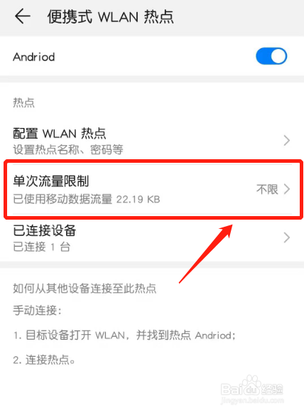 - 若是手机没有良多流量,建议开启热点流量限制。