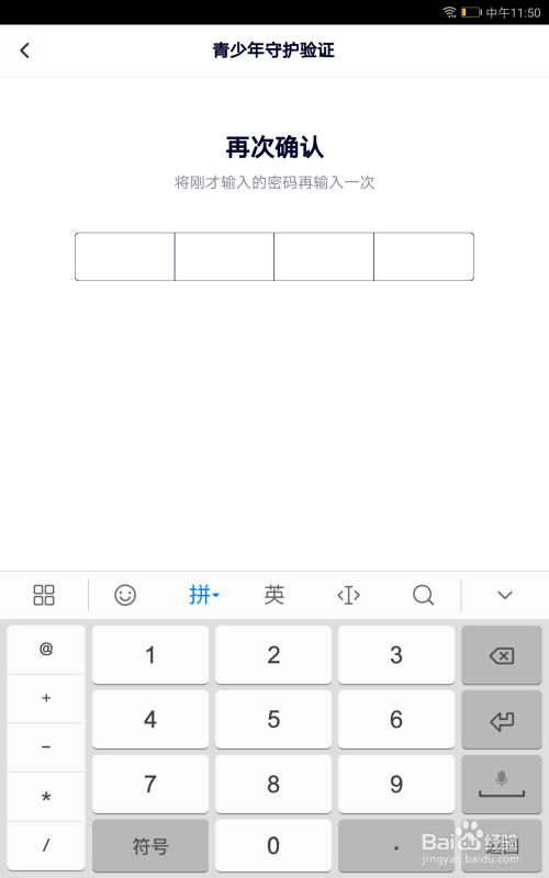 第四步,在设置青少年模式之前需要设置密码,设置好密码,确认密码即可开启青少您模式。