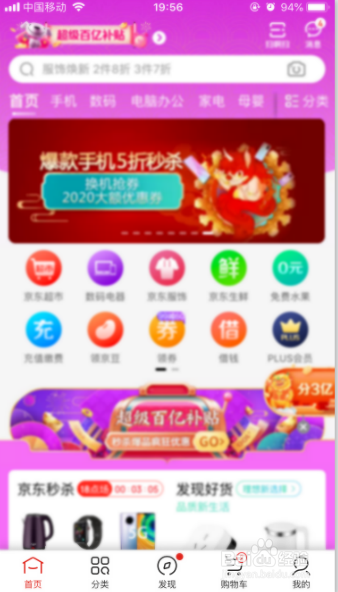 首先在手机中点击京东应用图标,进入程序本家儿页。
