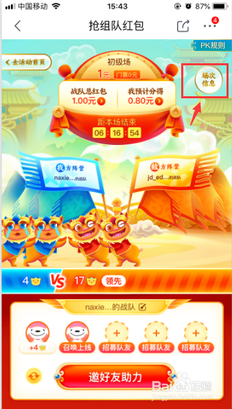 点击左侧的“抢组队红包”按钮。