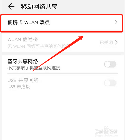 进入移动收集共享页面,点击“便携式WLAN热点”。