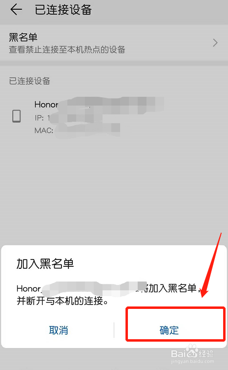 长按该毗连设备,页面中会提醒“插手黑名单”,若要将该设备列入黑名单,点击“确定”即可。