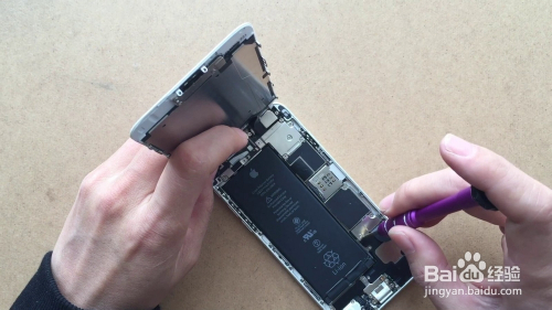 先拆下手机底部的两颗从头至尾钉并拆开屏幕。