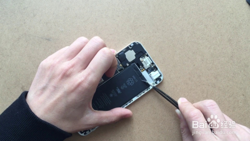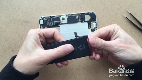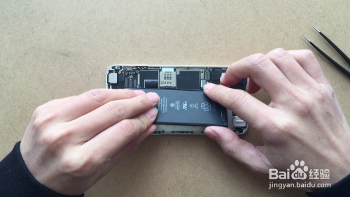 用镊子翘起预留在电池底部的易拉胶,然后在节制好力度和速度拉出易拉胶,并小心用镊子底部撬出旧电池。