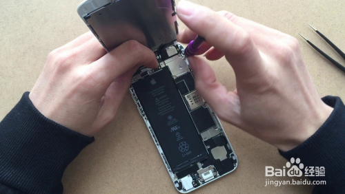 拆下电池排线和屏幕排线金属庇护铁片,并断开电池排线扣和屏幕排线扣