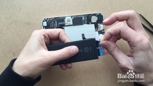 贴好电池跋文得断开电池排线扣,目标是避免接下来的操作引起不需要的问题。