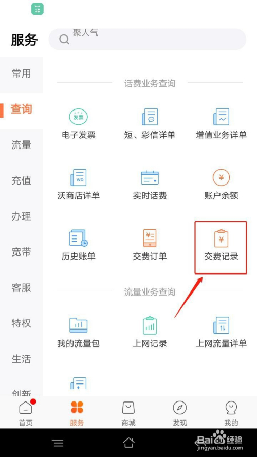 4 标的目的上滑动页面,然后单击“交费记实”选项。