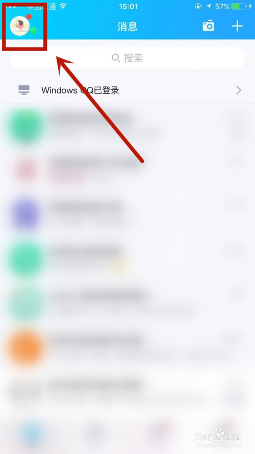 1.打开手机QQ,点击左上角本身头像。