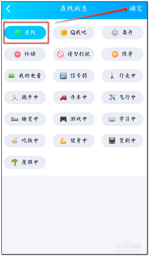 - 想要手机qq不显示及时电量。需要在qq设置在线状况去除选择“我的电量”项目