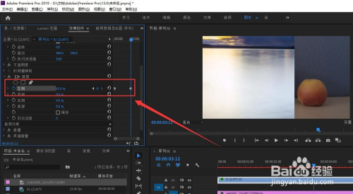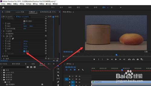 导入的视频素材进行鼠标拖动,将视频素材进行恰当缩放,让整个视频都显示出来。