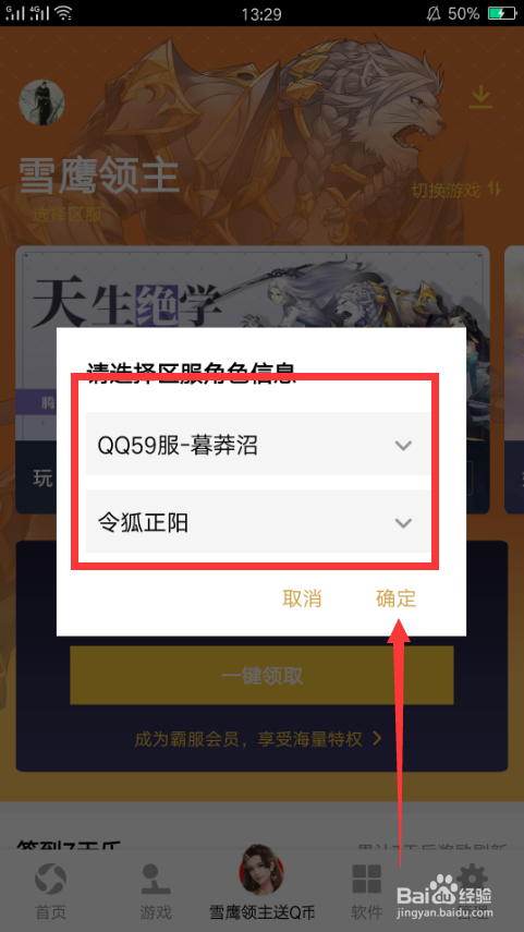进入雪鹰领本家儿游戏界面后,点击“一键领取”。