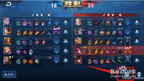 比及对局竣事后,我们可以看到,在结算页面左下角有一个对局回首选项,点击进入。如图所示