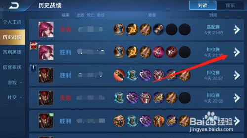 6、在汗青战绩中选择一个对局打开,在右下角也能看到对局回首。