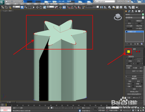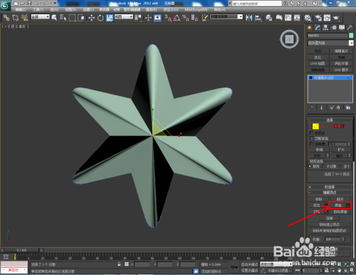 点击【极点】,选中六圆角星柱顶部的点并将其缩放到一路,点击【焊接】将选点焊接为一点;