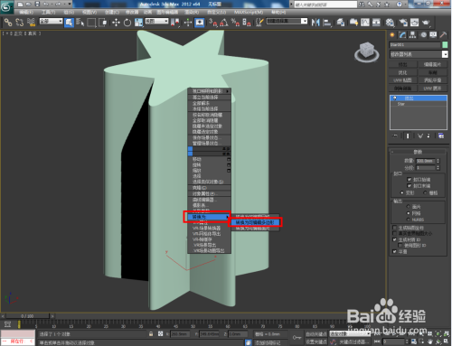 选中六圆角星图案,点击【点窜】-【挤出】,按图示设置好挤出的各个参数,绘制出一个六圆角星柱体模子并将其转换为可编纂多边形;