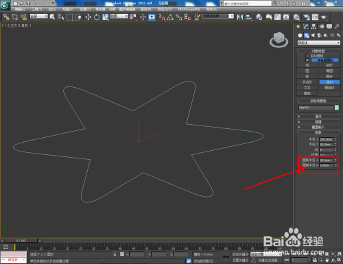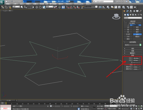 点击【建立】-【图形】-【星形】,按图示对星形参数进行设置,绘制出一个六圆角星图案;