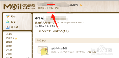 在QQ邮箱本家儿页内,点击【设置】。