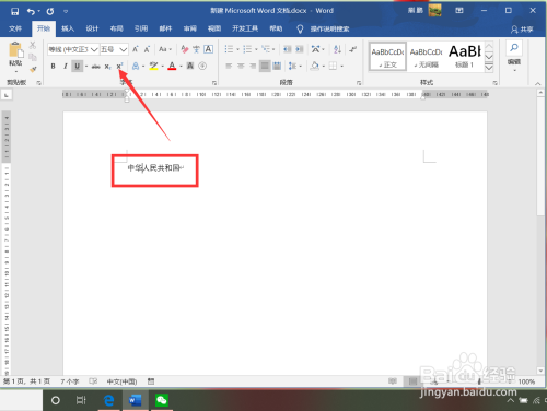 1、打开Word文档后点击上标