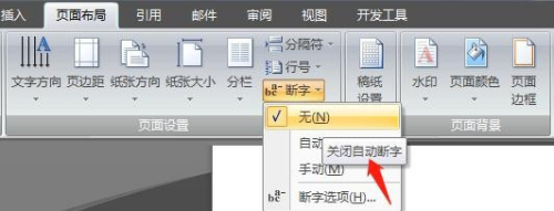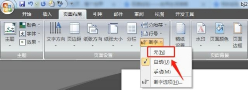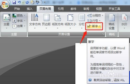 3 在“页面设置”功能组中,单击“断字” 按钮。
