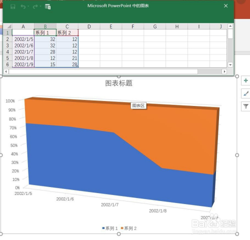 点击“面积图”,点击“三维百分比聚积面积图”,然后点击“确定”。