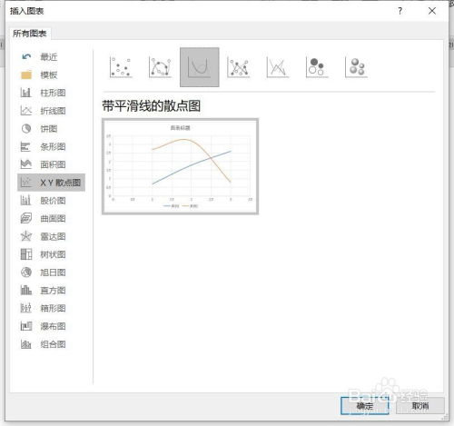 点击散点图,点击带光滑线的散点图,然后点击确定。