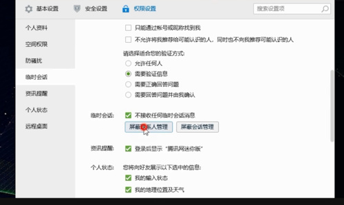 - 5点击姑且会话里的“屏障联系人办理”,即可屏障里面所有老友发来的信息。