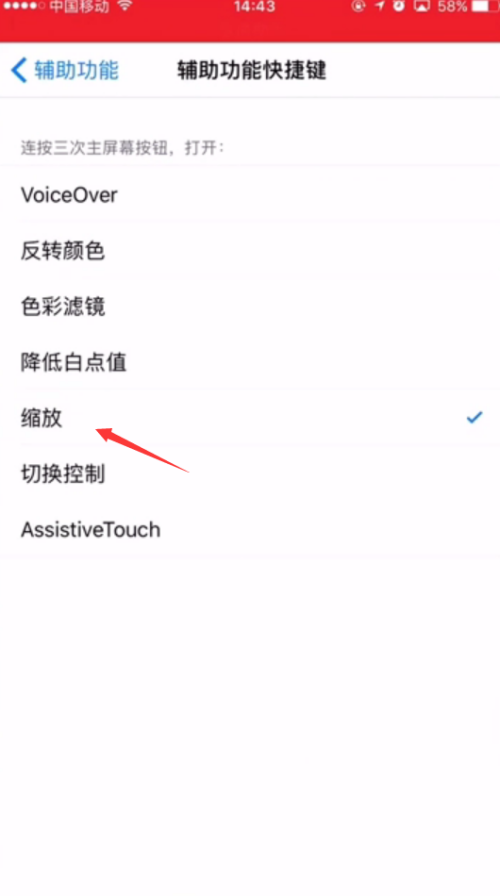 - 5返回上一级,滑到底部,找到辅助快捷键,选择“缩放”。