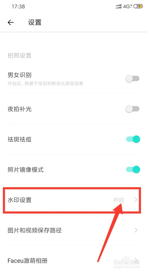 第五、进入水印设置中,在开启水印后边的按钮是打开的,点击进行封闭;