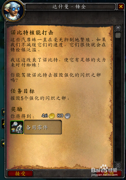 这个使命要求玩家激活诺比特节制面板,摧毁40个汽摩托蛛和5个强化的闪织之卵。