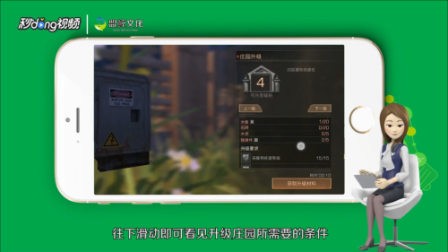 - 5往下滑动即可看见进级庄园所需要的前提,我们只要达到所有前提,就可以直接进级庄园。