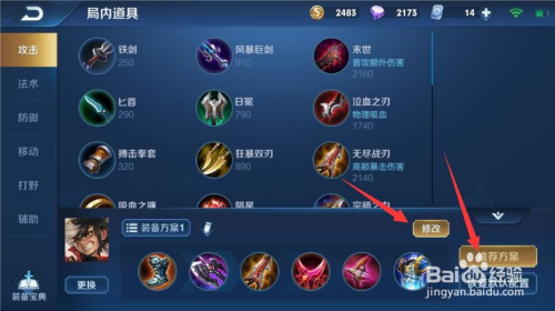 第三步,点开局内道具后就是英雄的局内装备设置,这里点击点窜可以本身设置,也可以直接点击系统保举或者大神保举