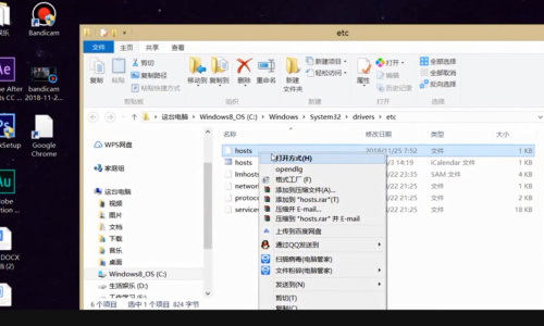 - 3在弹出页面中,右键单击“hosts文件”,选择“打开体例”。