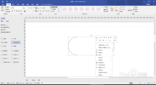 第三步,把您所需要的流程图外形拖动到白色画布内,点击右键选择“编纂文字”,即可往框里输入文字。如图所示。