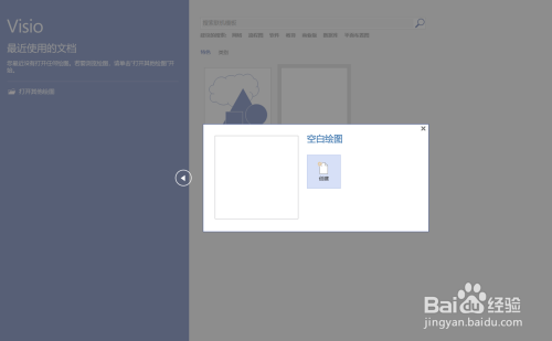 第一步,打开我们电脑上的Visio 2016软件,点击“空白画图”,如图所示,建立一个新的文件。