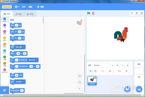 进入scratch3.0的选择一个脚色页面,在动物类别中点击选中大公鸡;