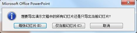 保留位置合适之后,点击保留,会呈现“想要导出演示文稿中的所有幻灯片仍是只导出当前幻灯片?”提醒信息,可按照需要选择,这里选择“每张幻灯片”。